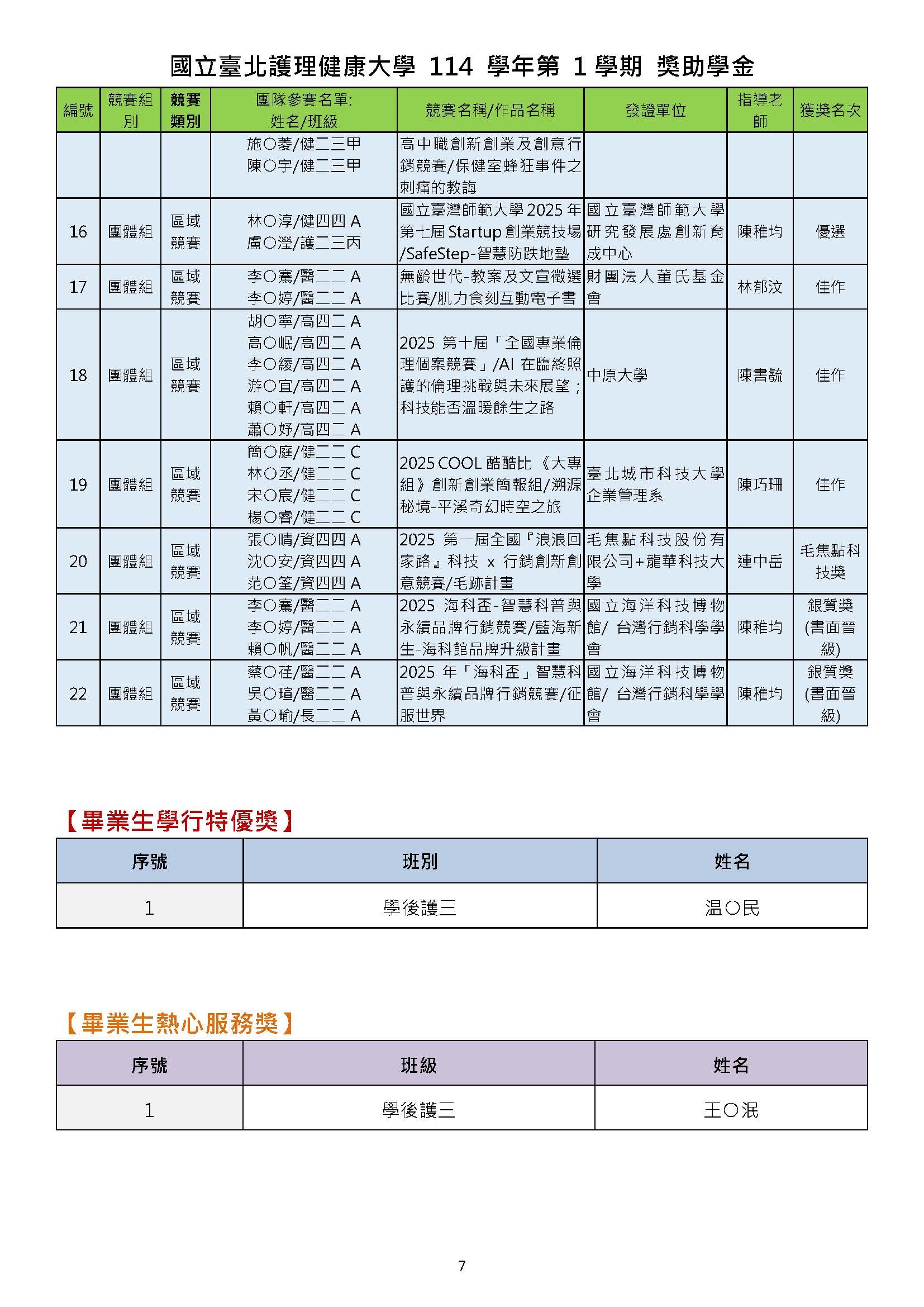 ◎助學金名單請自行上【E-portfolio數位學習歷程→個人資訊】系統查詢。